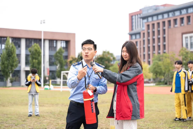 疏散演练结束后,全体人员在校园操场接受了专业的消防安全知识培训。现场讲解了干粉灭火器、消防栓的正确使用方法及注意事项,并进行了实操演示。在“实战”环节,学生们踊跃参与,轮流上场,亲身体验了使用灭火器扑灭初起“火灾”的过程,将理论知识转化为实际操作技能。