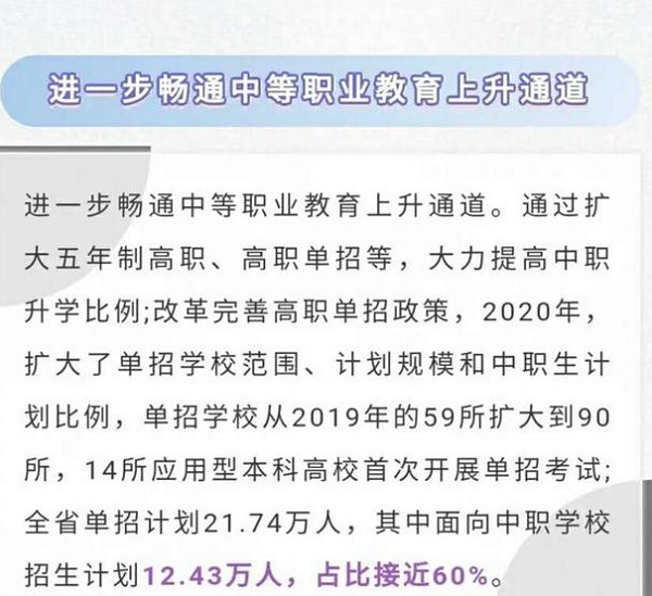 2019年四川省初中毕业生80.37万问,其中就读中职学校(含技工学校)31.98万人,占比40.94%。2020年全省中职招生比要达到45%。这个决定又说明了什么?