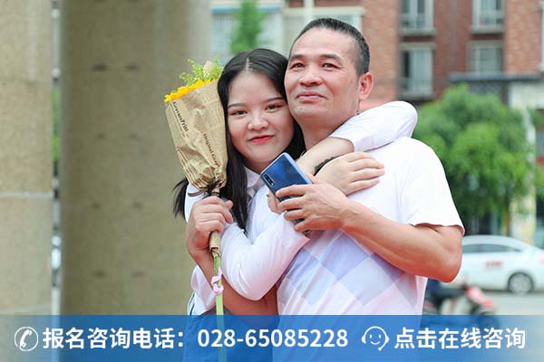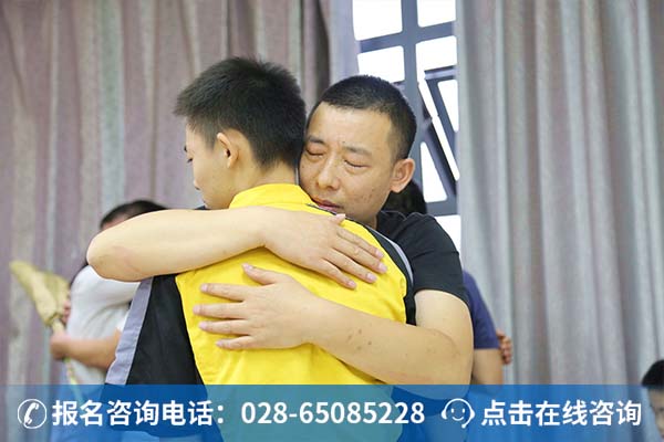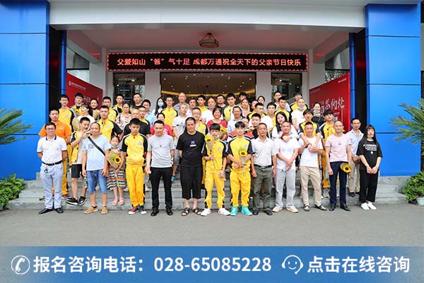 活动开始,学生手捧向日葵站成两列迎接自己的父亲到来,一个深深的拥抱,一句浅浅的话语,一张久违的合影,在此刻,就是父子间最亲密的瞬间。